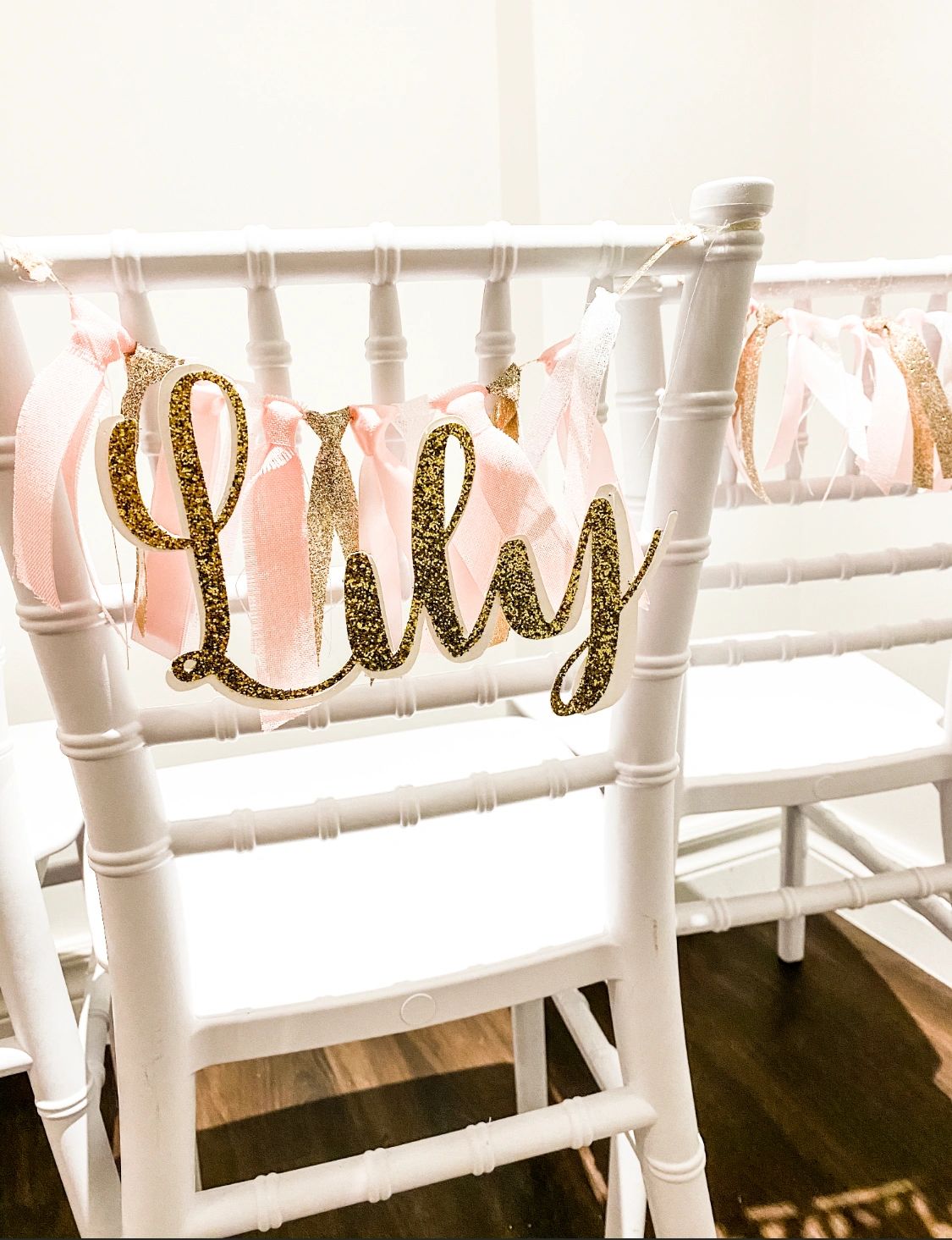 Add our decorative chair ribbon garlands. They are available in all themes and colours. If you don’t see one you like, talk to us about customization.
