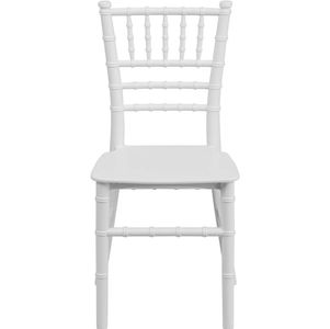 Our chairs are a crisp white Chiavari chair made for children, that compliment perfectly our white high gloss tables - matching any setting they are placed in.